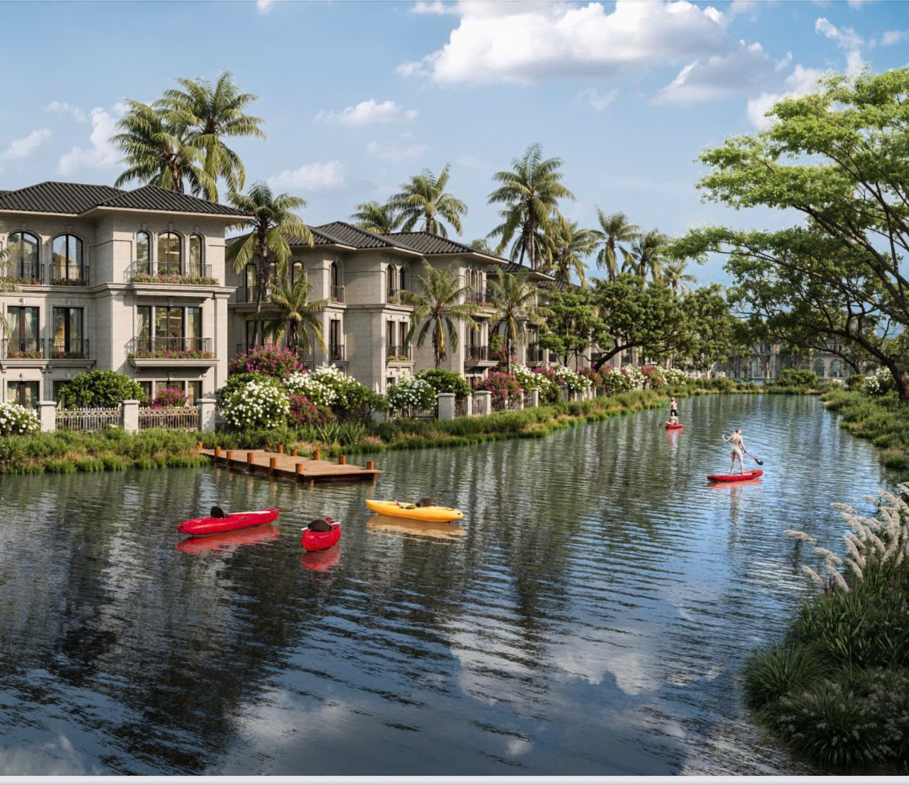 • Phân khu: Nằm trong tổng thể dự án 49,9ha - 54ha với 3 phân khu chính (Riviera, Legend, Wonder Island), bao gồm các shophouse ven sông và biệt thự liền kề.
