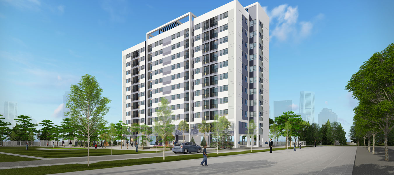 - Tổng thể kiến trúc tòa nhà hình hộp, Thiết kế căn hộ theo phong cách hiện đại nhất, các căn hộ đều có ánh sáng và gió thiên nhiên.