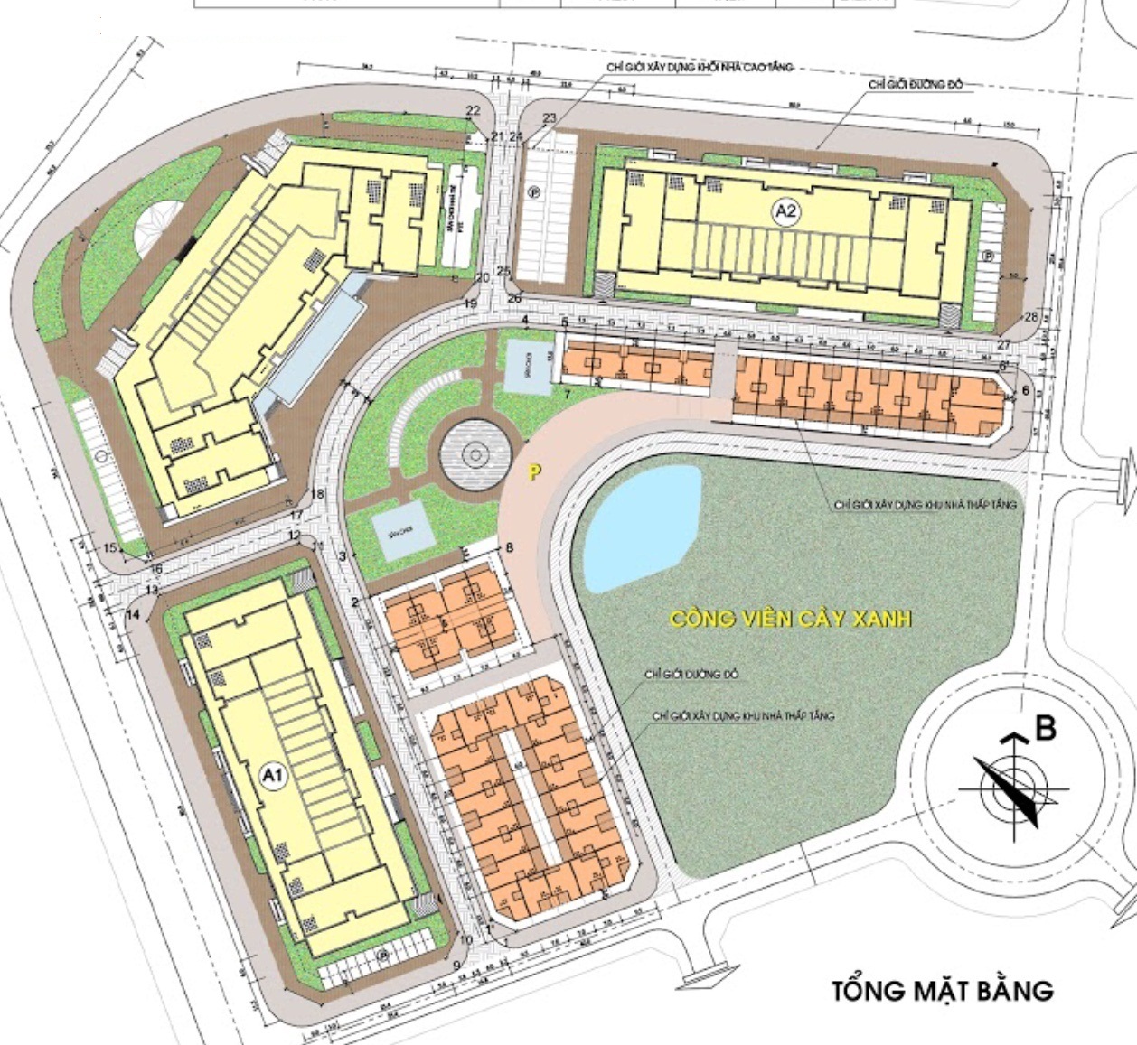 - Diện tích dành cho cây xanh + sân chơi: 2.481 m2.