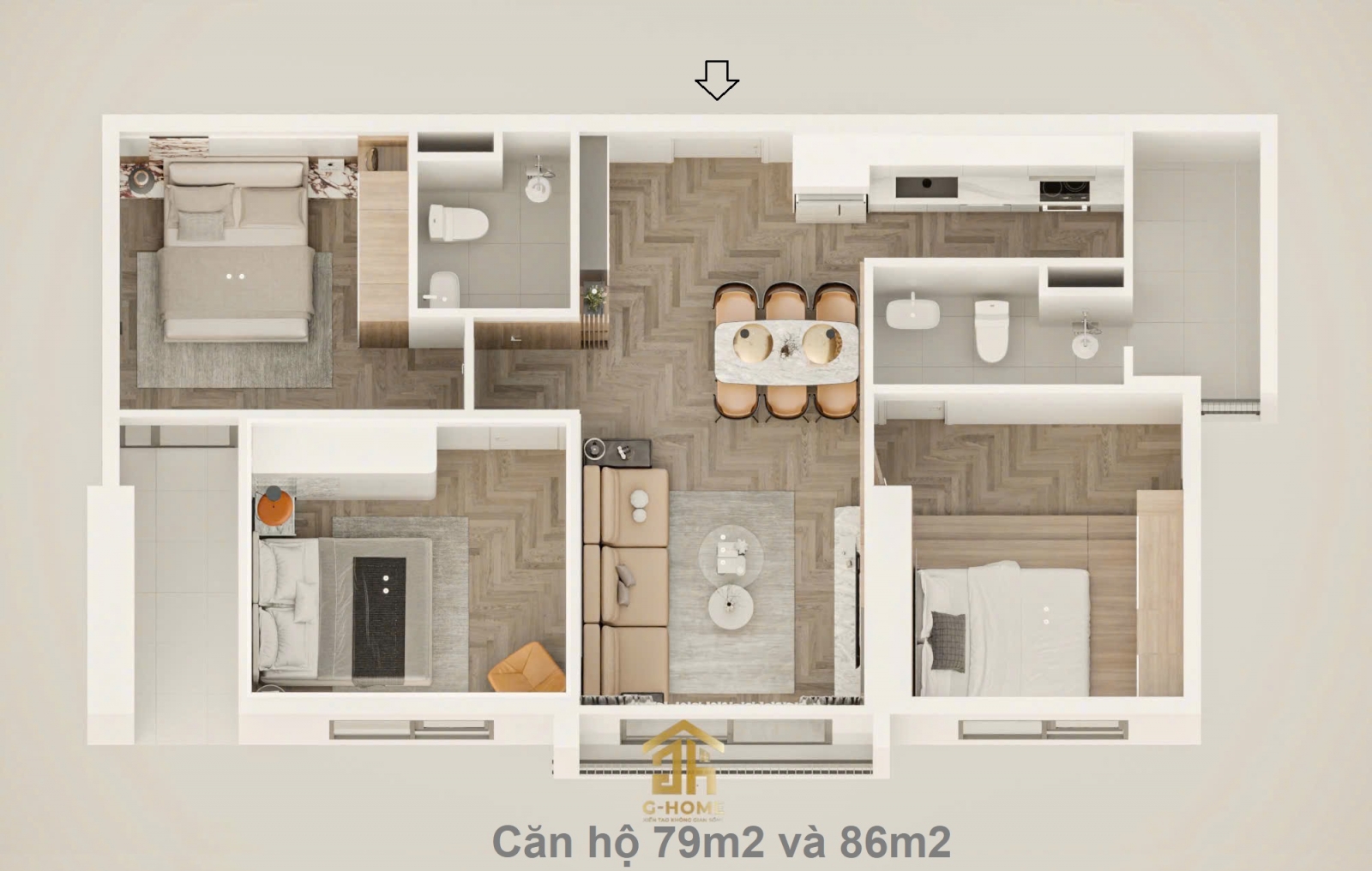 | 3PN - 2WC | 79m2 | 8.1 - 8.3 tỉ |