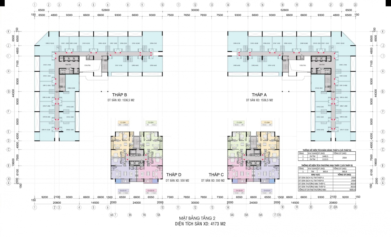 • Diện tích đất: 4,953 m2. • Tổng diện tích sàn xây dựng: 99,203 m2 • Phòng SHCĐ: 477 m2. |