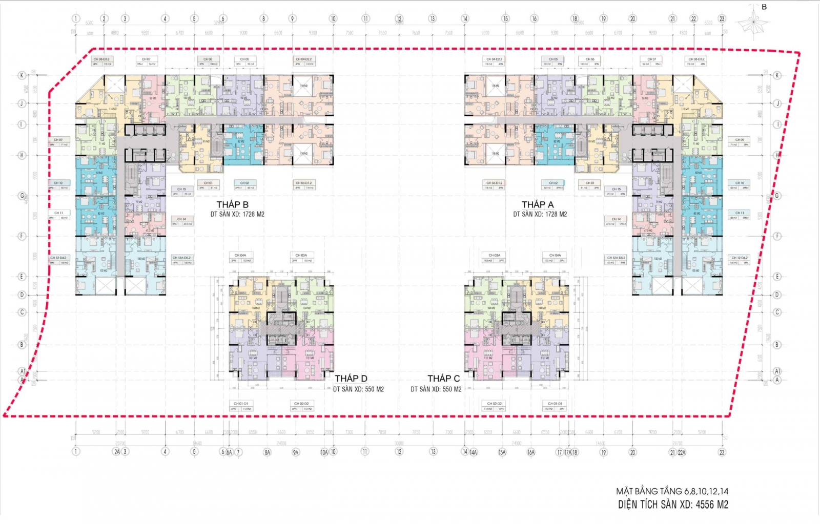 Mặt bằng Tầng 6,8,10,12,14 Platinum Cổ Linh