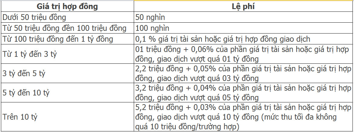 Điều trước hết và đầu tiên để có thể được công chứng là bạn cần chuẩn bị các khoản lệ phí cho dịch vụ công chứng. Mức lệ phí được tính căn cứ vào Điều 4. Mức thu phí, lệ phí trích từ thông tư quy định mức thu, chế độ thu, nộp, quản lý, sử dụng phí công chứng; phí chứng thực; phí thẩm định tiêu chuẩn, điều kiện hành nghề công chứng; phí thẩm định điều kiện hoạt động Văn phòng công chứng; lệ phí cấp thẻ công chứng viên, như sau: